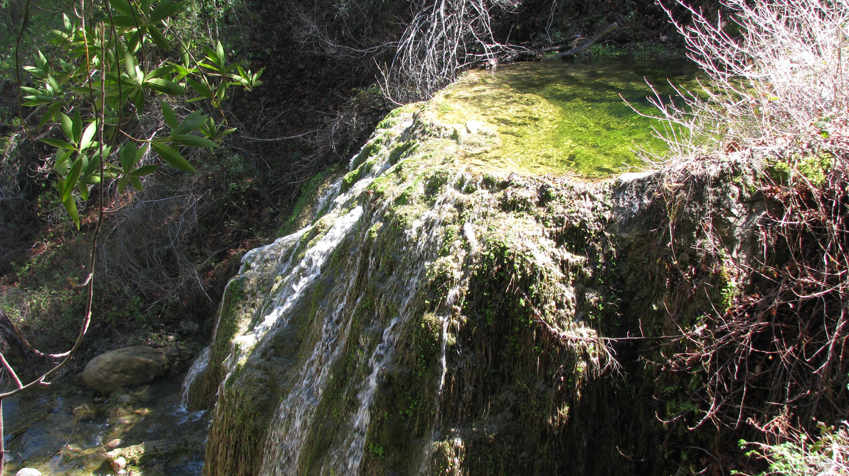 I’ve hiked a number of times down to Forbush and Cottam, but it had been two years since the last time I’d hiked to the Santa Ynez River from Camino Cielo. The hike to Forbush was effortless and as we continued the impact of the recent rain became evident. In particular there’s one large waterfall that has been built up over time and seems made almost entirely of mineralized deposits. And with the recent rainwater looked lit up like a storybook painting with it’s many cascades and mossy surfaces. In fact with all my recent immersion in lucid dreaming I started imagining the upper pool as being lined with a baroque design of local shell fossils and quartz and the pool itself surrounded completely by wild roses in bloom instead of poison oak.