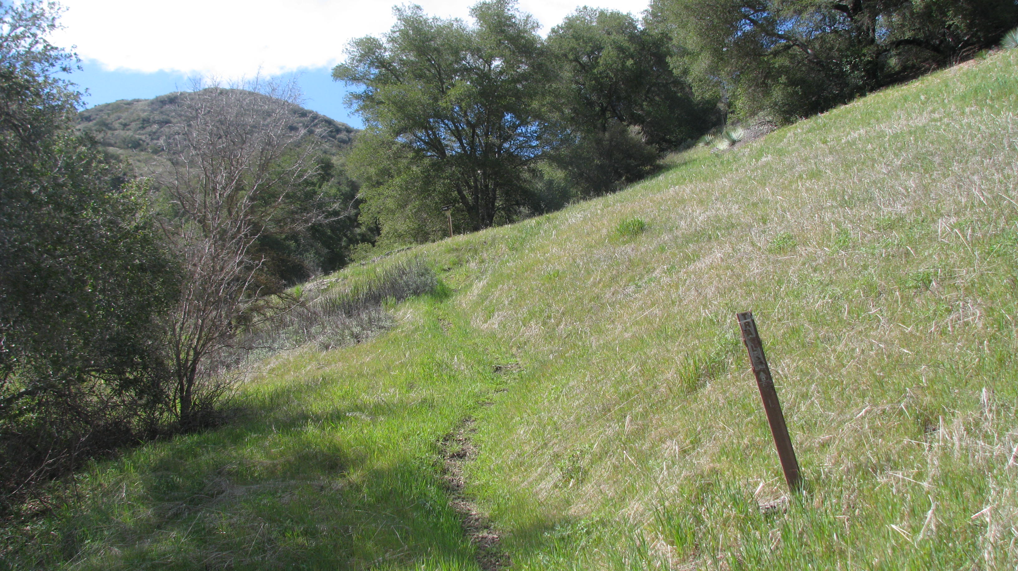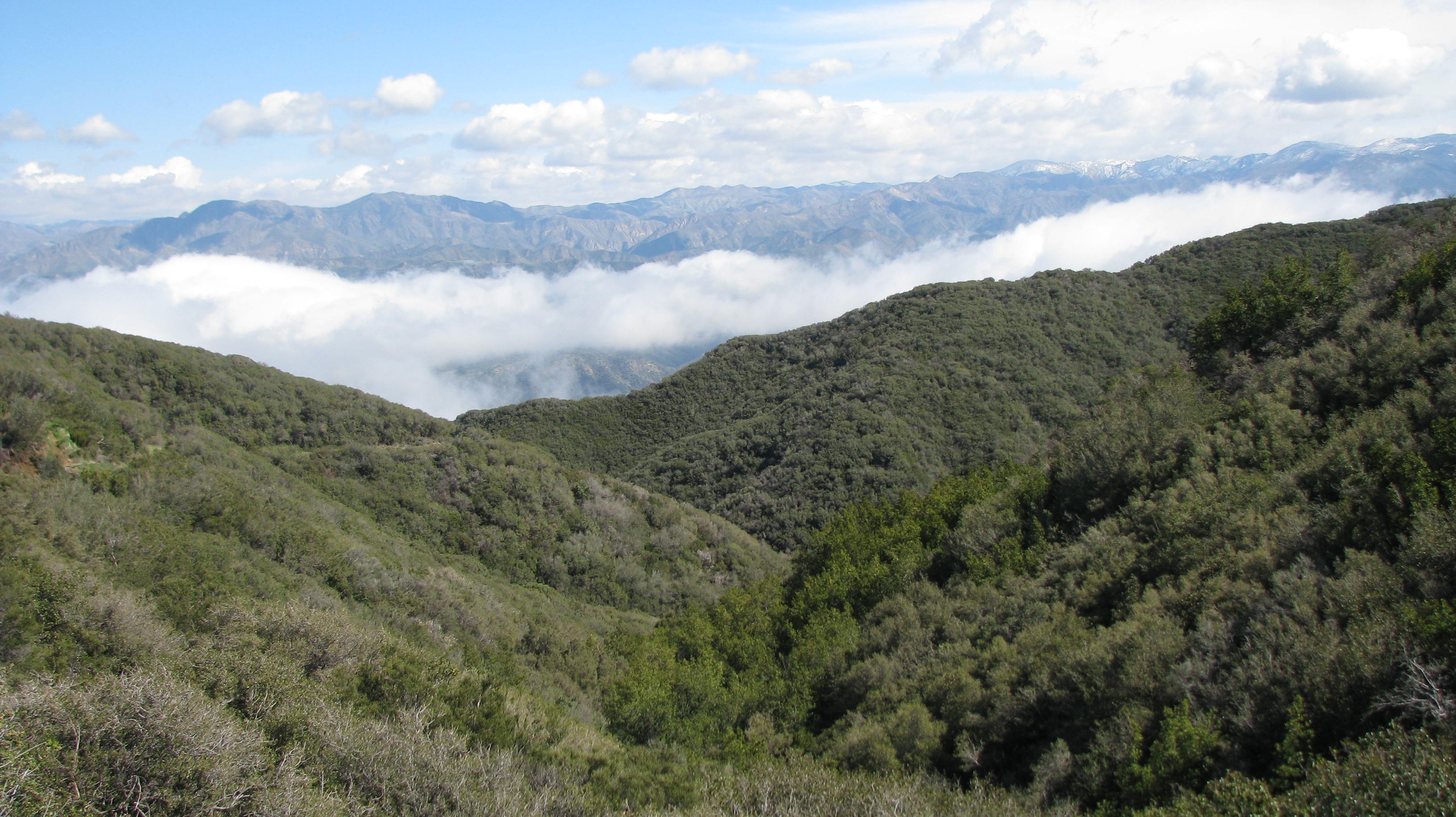 Day hiked the Cold Springs Trail from Camino Cielo down to the Santa Ynez River (about 7 miles round trip) “recently” [Mar. 7]. It had just rained the day before and so my girlfriend and I were inspired to visit the river and the many pools along the way. The trail to Forbush and Blue Canyon is actually one of the hidden gems of the Santa Ynez Mountains—the trailhead being only 30 minutes from downtown Santa Barbara. To get there by car, take Gibraltar Rd. and turn right onto East Camino Cielo and then continue for another 15 minutes until you arrive at the first cement water tower on the right. This is also where the Cold Springs Trail from Montecito meets Camino Cielo. Forbush is 2 miles down the backside. At Forbush the trail branches, with one trail heading off to the right and descending towards Cottam camp in Blue Canyon and the other branch continuing over a small rise before descending to the Santa Ynez River and on to Mono camp.