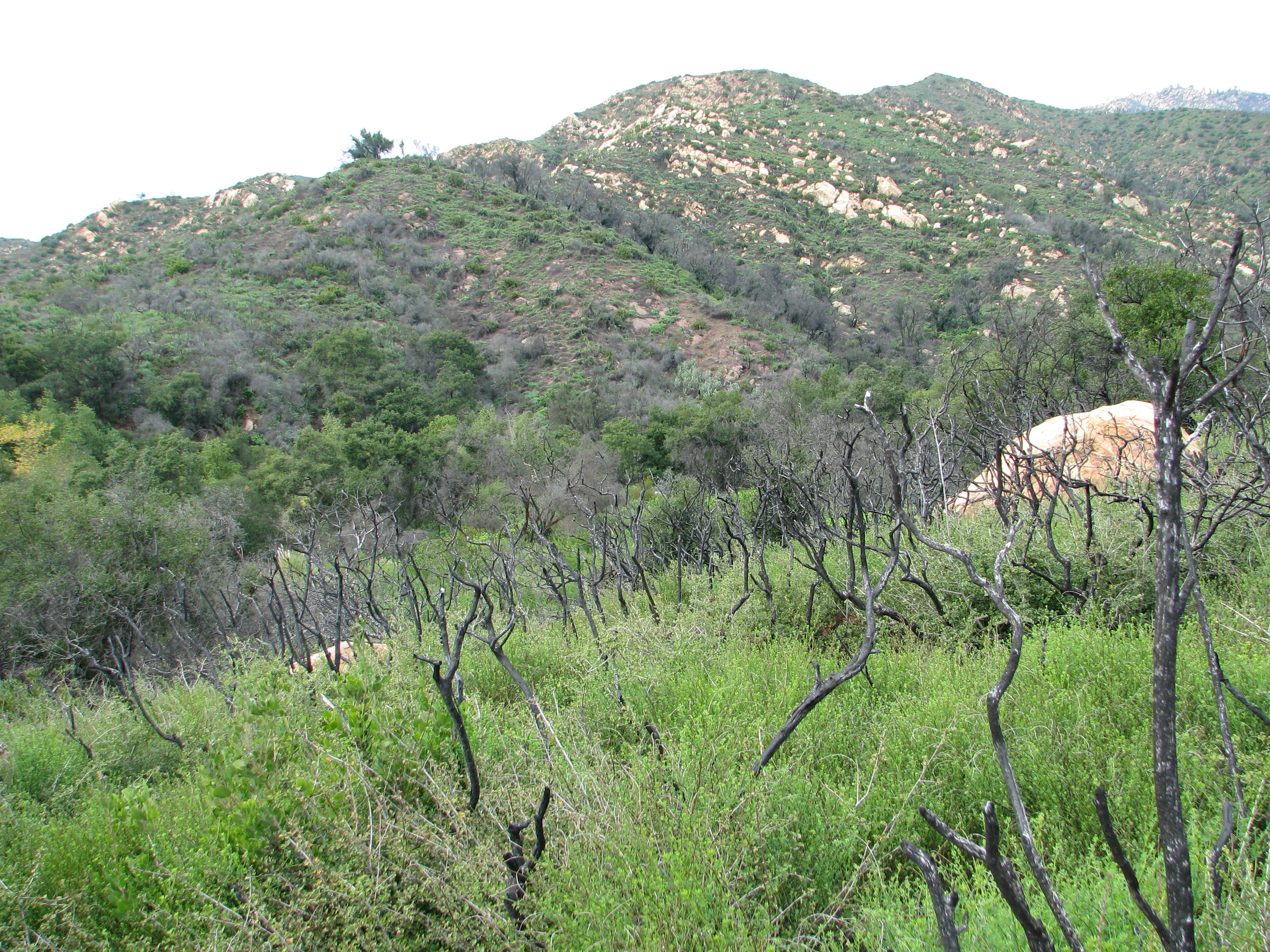 In 2008 the Tea Fire burned a portion of the eastern slope of the canyon. The next year the Jesusita Fire burned the remainder of the canyon and that difference of just one year is noticeable in the plants growing back. Not only has the recovery been impressive, but the whole process has also provided us a unique opportunity to witness firsthand our local chaparral as it moves through its cycle of fire and renewal.