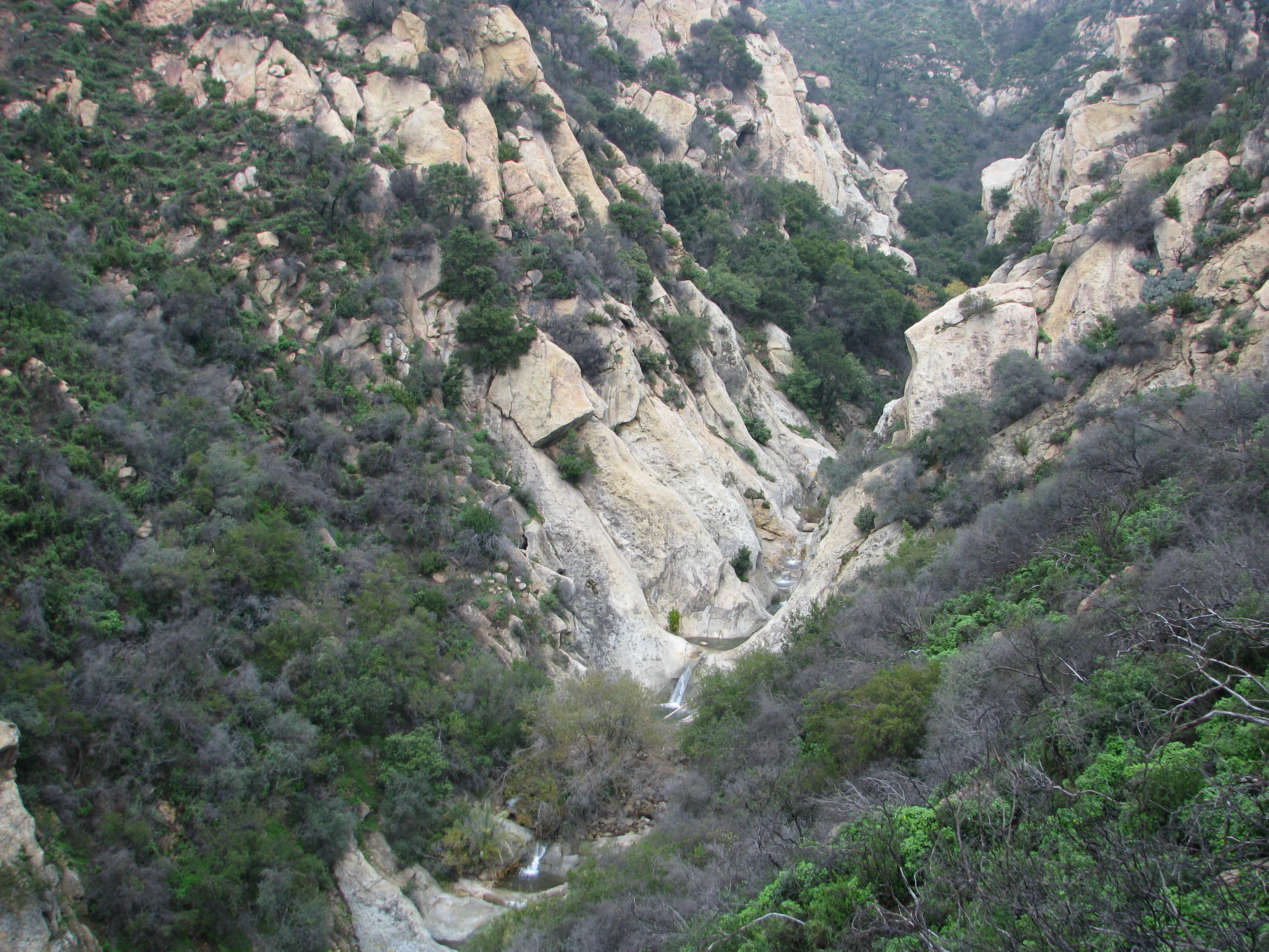 If you’re a fan of rock hopping, there are 3 more pools to found another half mile upstream. For the daring you can rock climb your way above this first set of pools or as an alternative, backtrack downstream and take the ridge “trail”. To locate the ridge trail start where you left the Jesusita Trail and almost immediately on your left find the “trail” that leads up to the ridge along the Western side of the canyon. This will take you just past the first set of pools. From there it is mostly rock hopping, but you’ll occasionally find small sections of trail.