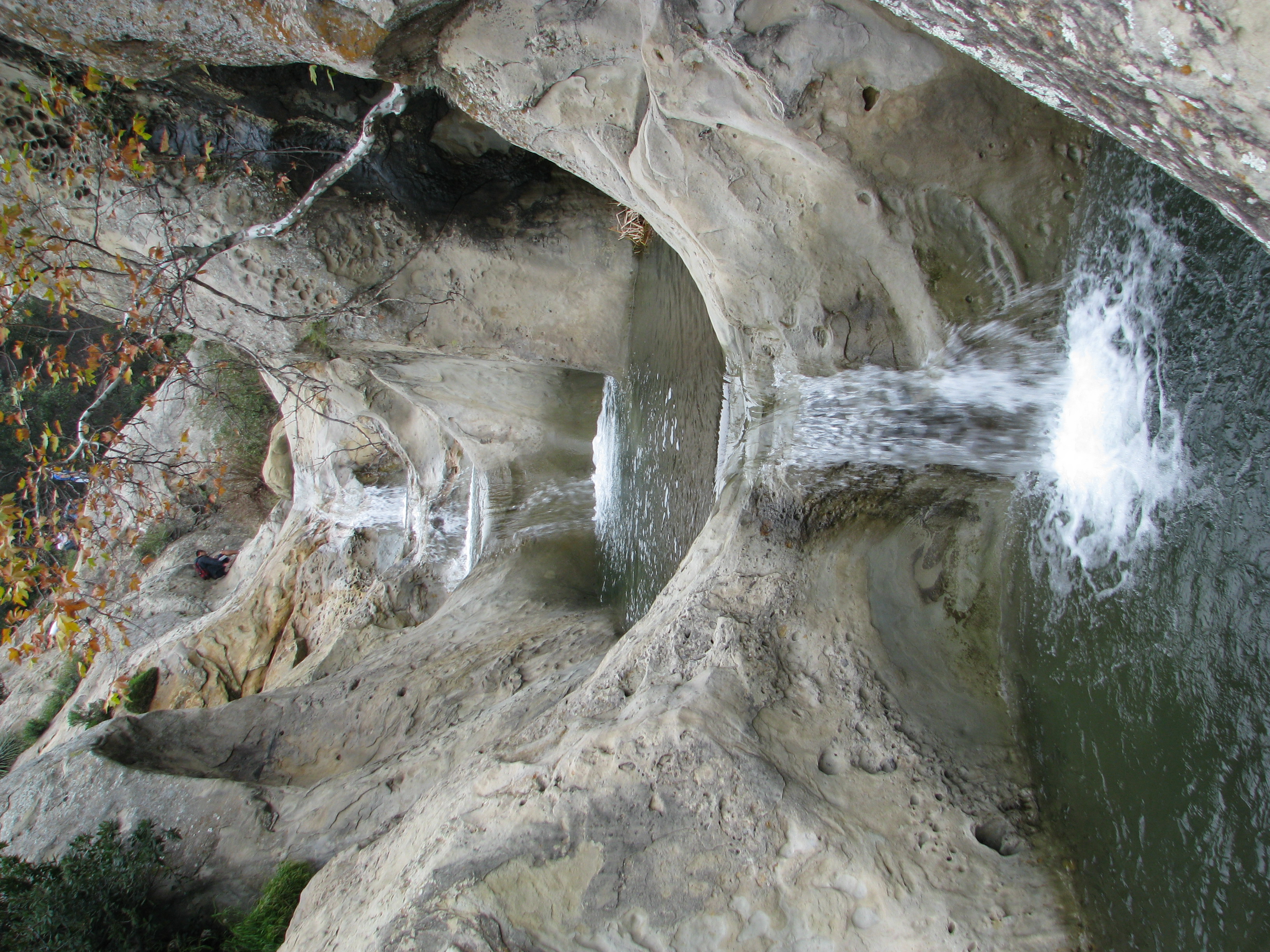 There is no official trail, however enough people hike upstream to the falls that there is a trail to be found part of the way. If you lose the trail, not to worry as it’s less than half a mile to the falls from here. The falls are easy to recognize, as they are a captivating series of pools carved in the sandstone by the creek.