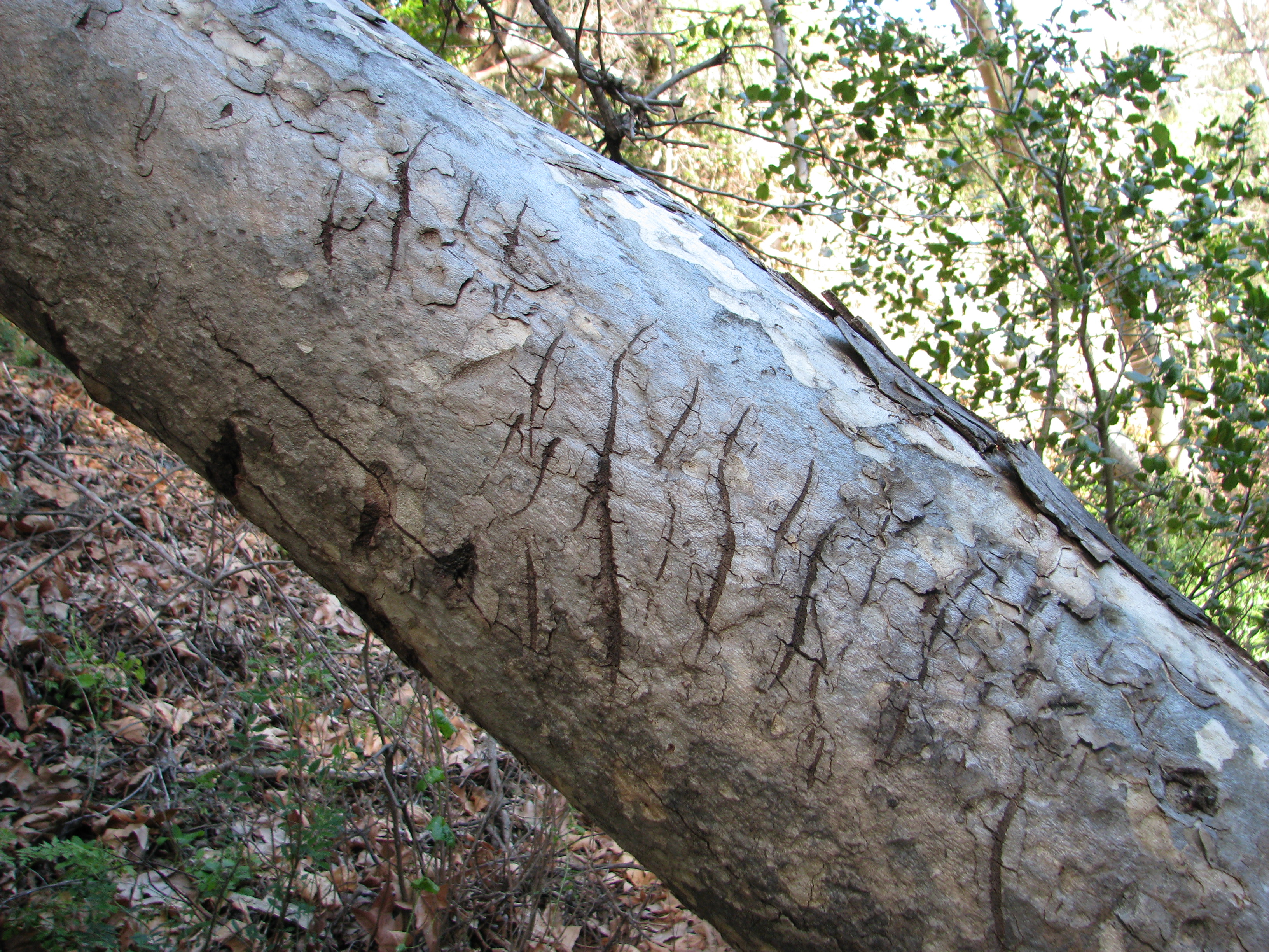 The trail does continue downstream for another quarter mile, becoming progressively more overgrown until it turns into more of a bear trail as evidenced by the fresh bear tracks on the ground and bear markings on some of the trees. The trail at one time led towards Zaca Peak.