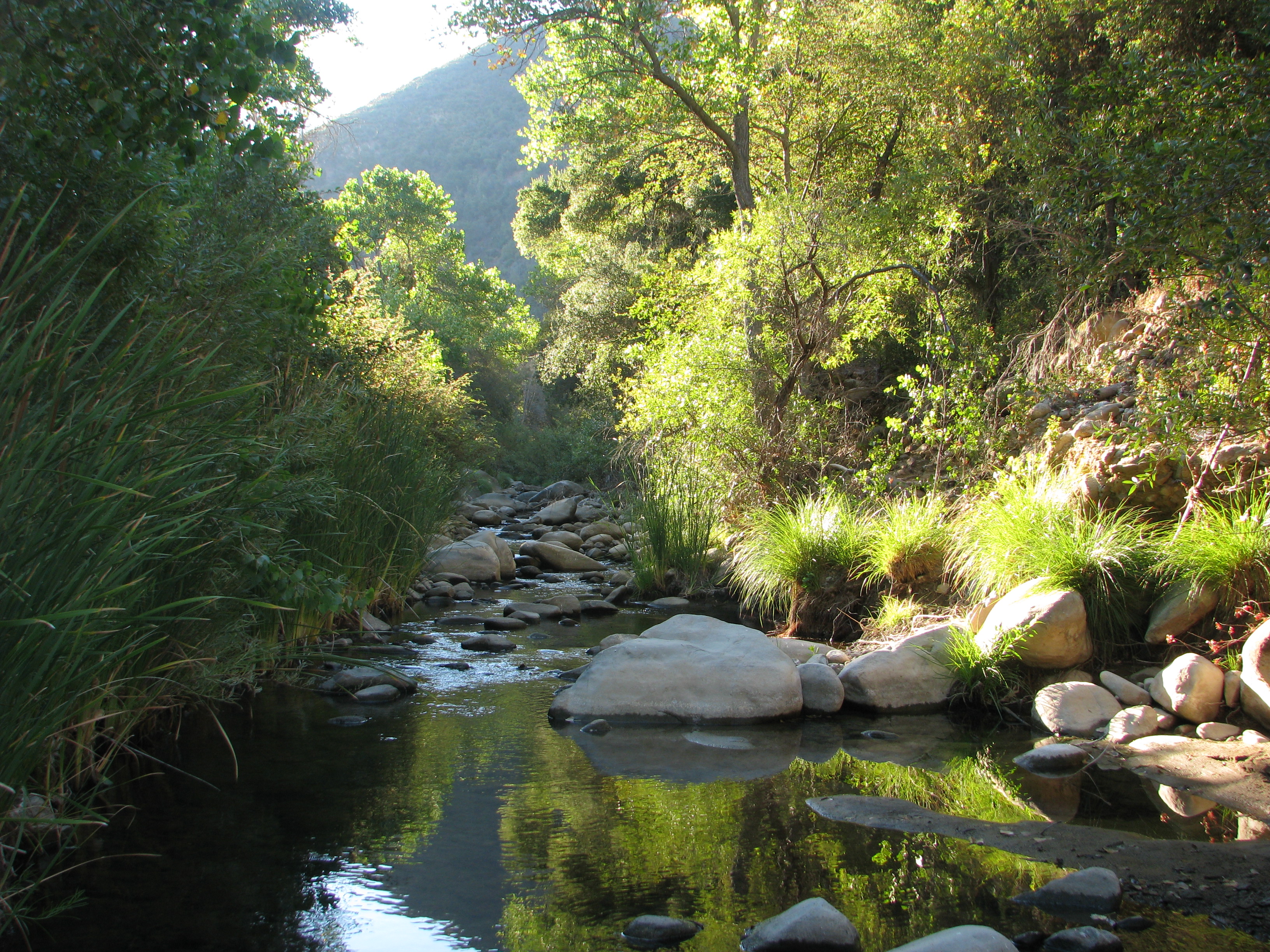 To get to the trailhead from Santa Barbara take State Route 154 to Paradise Road and continue along Paradise Road to the kiosk at the first crossing. You will need an adventure pass, which you can purchase at the kiosk. Continue on Paradise Road as it crosses the Santa Ynez River and then turn left towards Upper Oso campground. Parking for the trailhead is found just past Upper Oso at the locked gate where the paved road ends. From Upper Oso the trail follows the Buckhorn Camuesa Road; you’ll want to keep alert as the road is open to motorcycle and OHV (off highway vehicle) traffic. At the three quarter mile mark the Santa Cruz Trail leaves the road and continues following Oso Creek. Almost immediately you’ll see a sign that says “Next Water Beyond 19 Oaks – 5 Miles” with the 5 scratched out and replaced with a 9. The water 5 miles past Nineteen Oaks is at Little Pine Spring which can be difficult to get to and the water found 9 miles past Nineteen Oaks is at the Santa Cruz Creek.