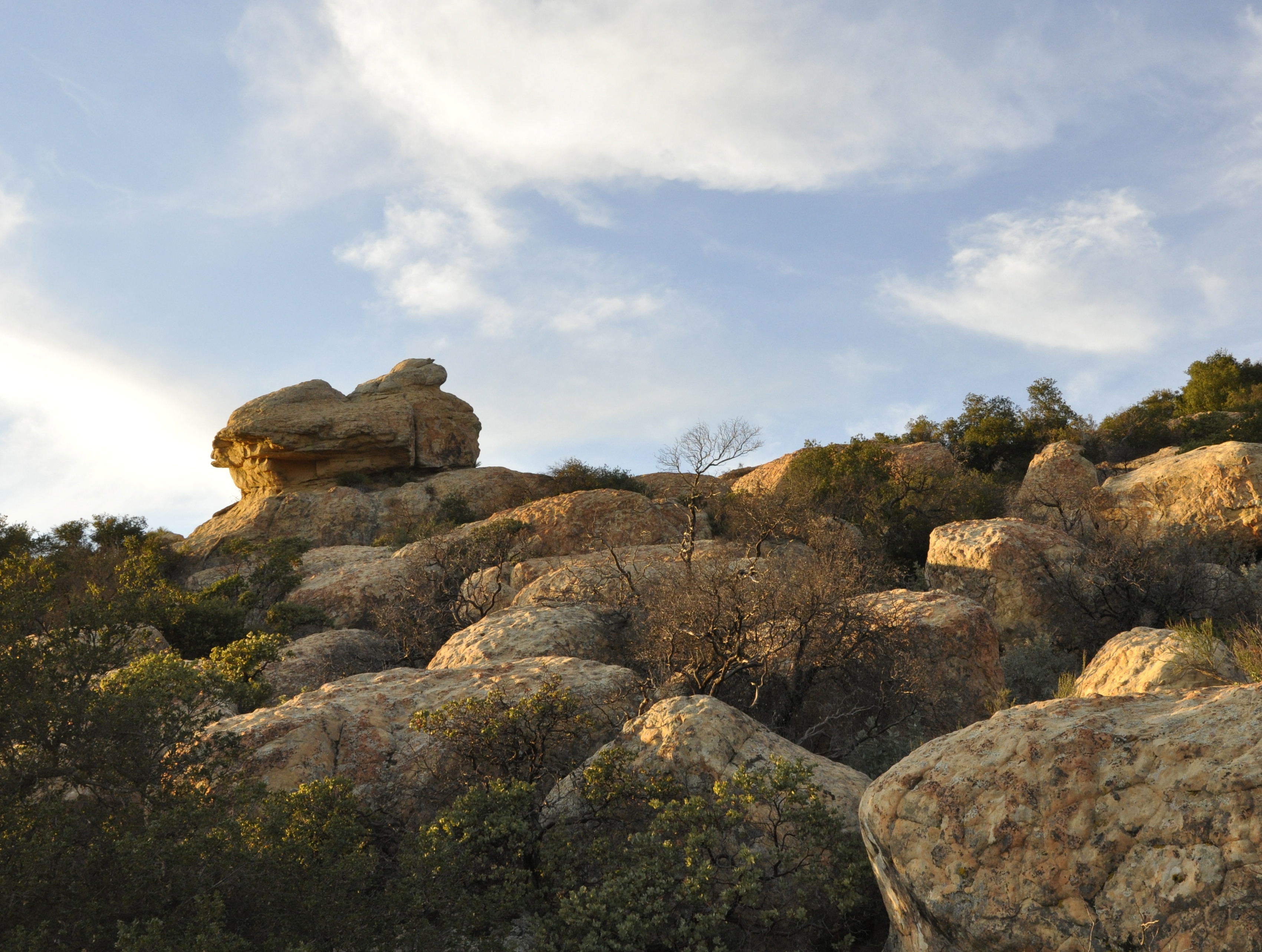 Roughly a half mile in the trail arrives at a large rock formation, which essentially represents the upper edge of the Playground. From here the number of trails begins to multiply, again offering countless opportunities for exploration. As with Lizard’s Mouth, there is no single maintained trail, just different paths through the rocks and chaparral that one can find and create.