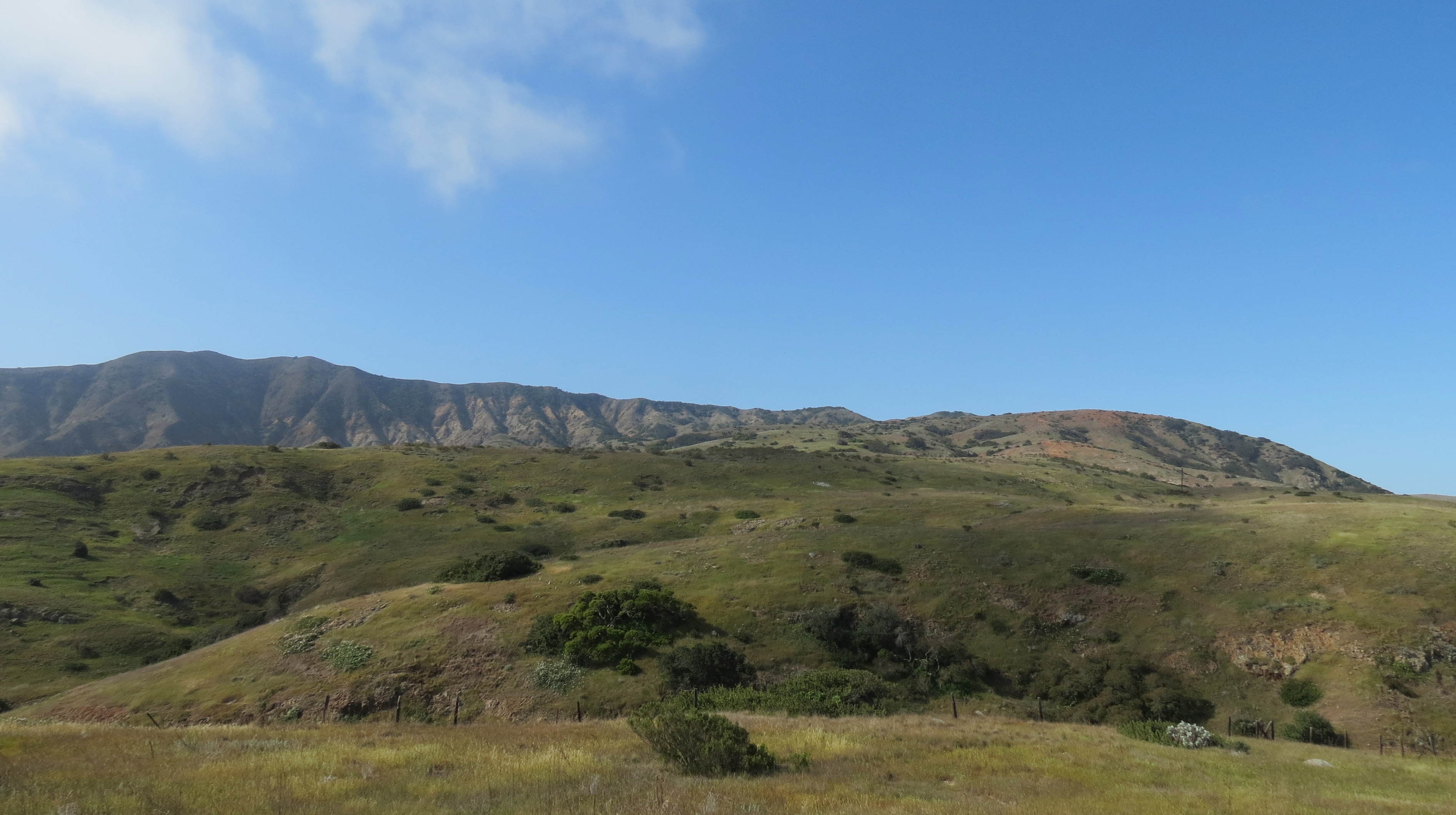 The trail continues east along the main ridge or spine of Santa Cruz Island and offers views of the ocean on both sides, and in the distance the Montañon Ridge. The Montañon Ridge more or less bisects the island north to south and as one approaches the ridge one can see where the trail climbs right over it, the hike appearing much more formidable than it actually is. And although the section over the ridge is the steepest, it can also be most satisfying.