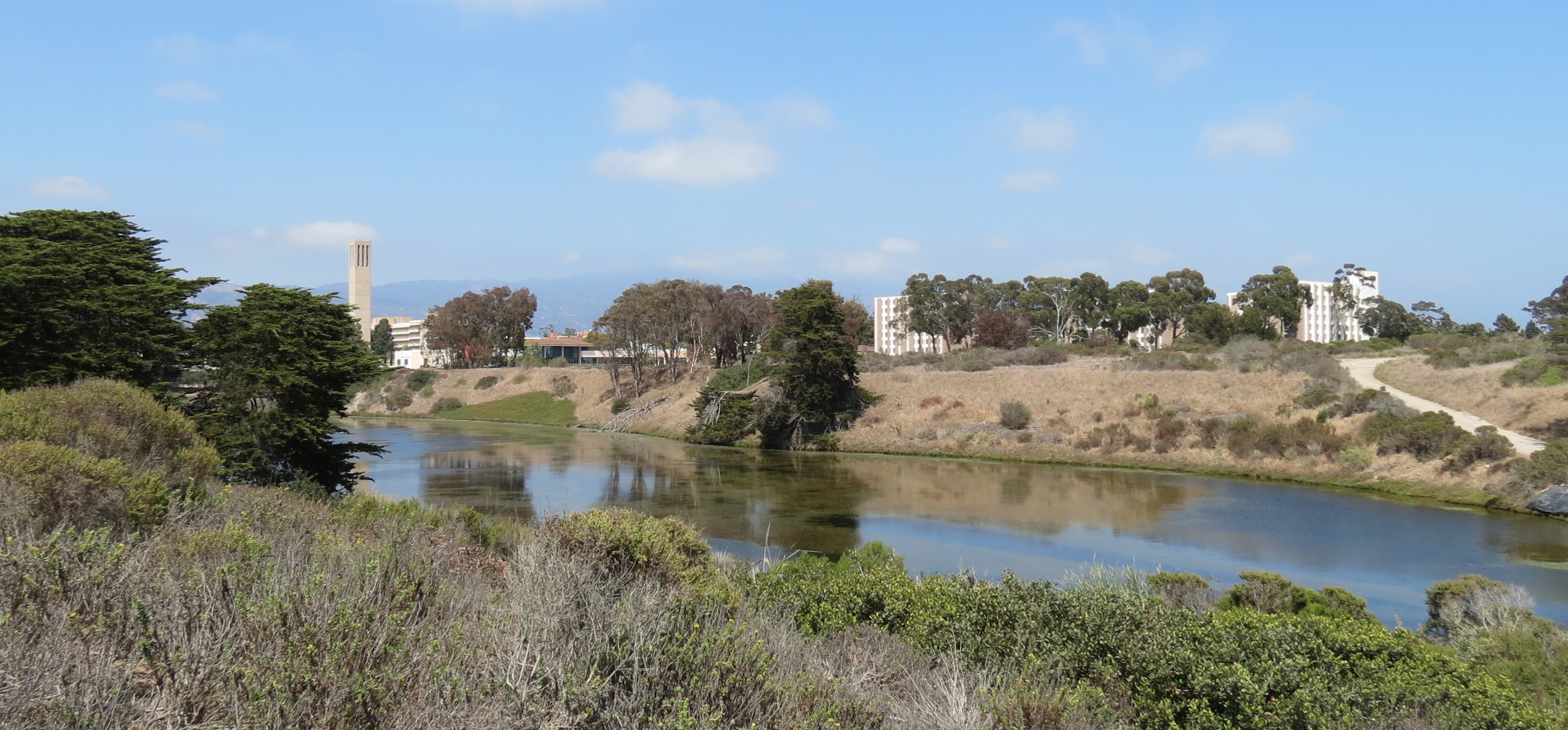 The walking tour starts behind the University Center and continues counter-clockwise around the lagoon. Because parking on campus can be challenging and expensive, one alternative is to park in Isla Vista and continue on foot across campus to the lagoon.