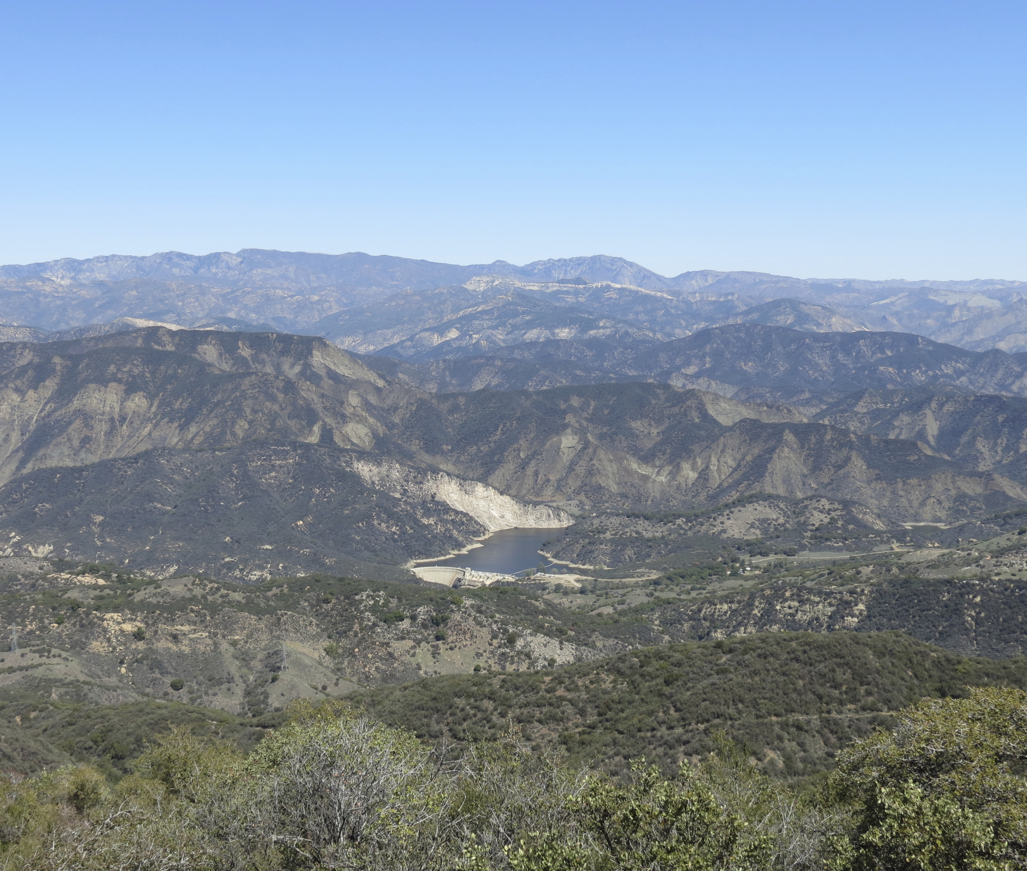 Because both the route along the trail and Angostura Pass Road start at the top of the Santa Ynez Mountains and lead down to the dam, one can make a loop hike and enjoy a variety of scenery. The hike along the trail and back is about nine miles, while the loop route is about 11 miles.