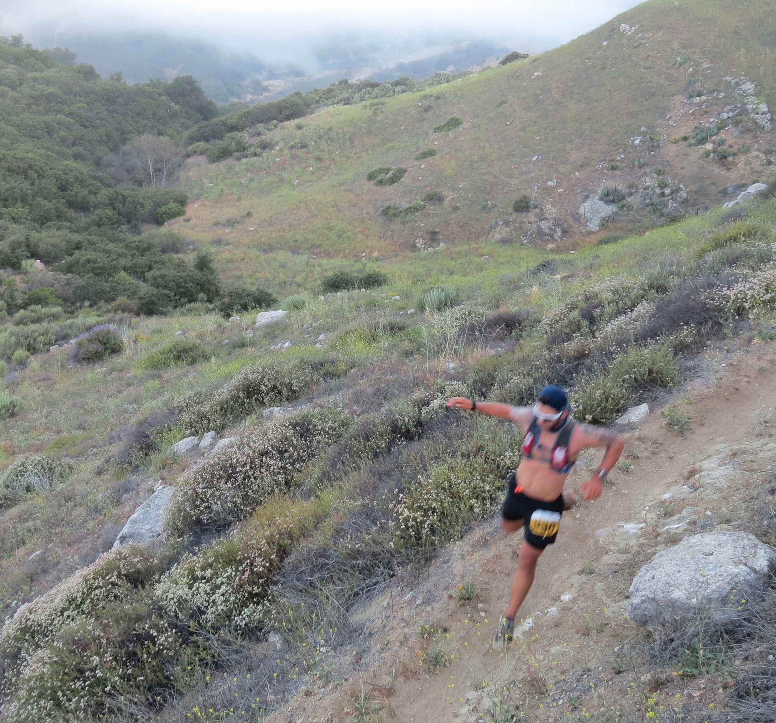 Here, the 100 mile route brought those runners down into the Santa Barbara front country. The route followed San Ysidro Trail down to Edison Catway, then east along Edison Catway through Buena Vista Canyon and over to Romero Canyon arriving at the sixth aid station. From there, the 100 mile route continued along Old Romero Road up to Romero Saddle and the seventh aid station.
