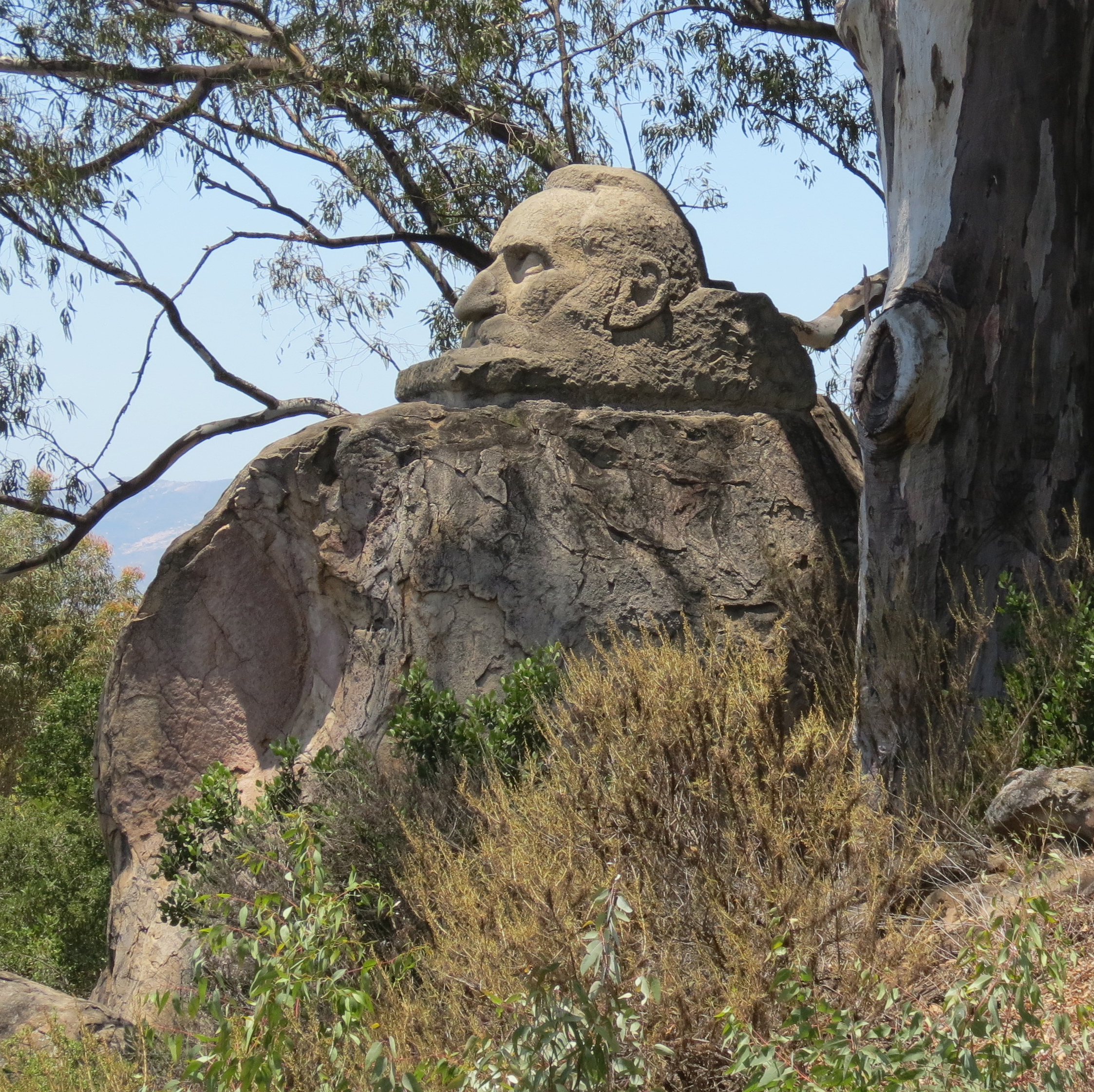 Freeman remodeled the house and covered the outside with plaques and medallions commemorating Franceschi, selected historical events, and other notable individuals. Freeman also commissioned a large carved sandstone head of Franceschi. The sculpture can still be found by starting from the end of the main access road and continuing west through the less developed part of the park.