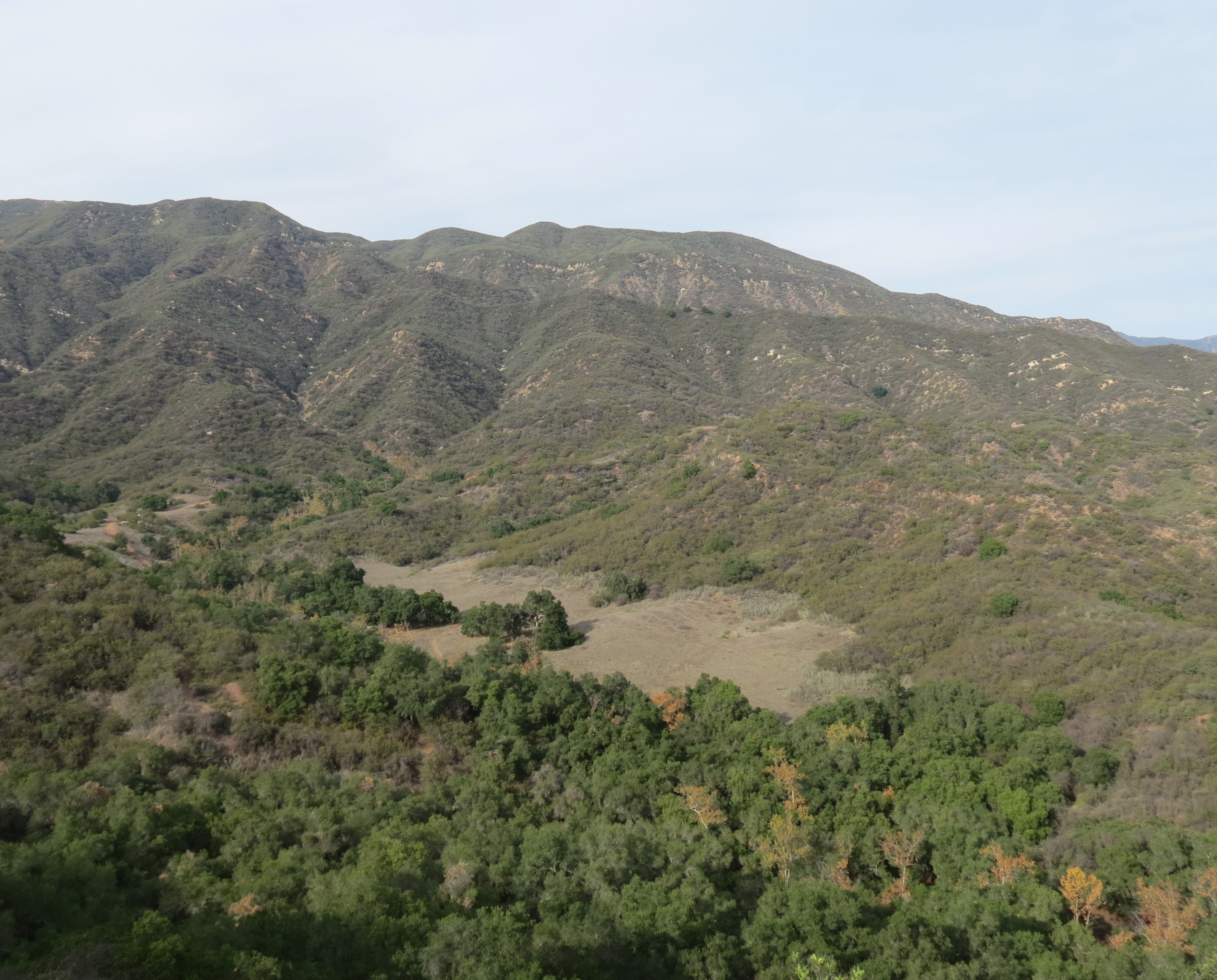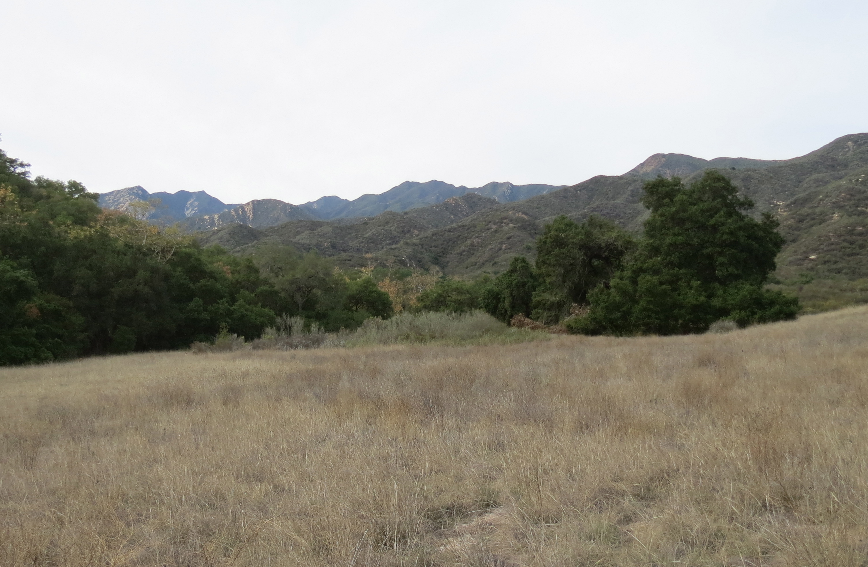 At about the 2-mile mark from El Nido Meadow, Rice Canyon Trail passes Kennedy Ridge Trail, which leads up towards the Santa Ynez Mountains.